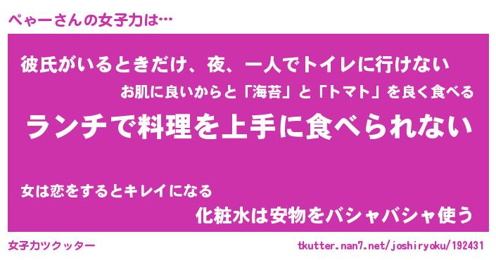 | ヘコむあだ名 | 『ぺゃにー』『豆乳』『ぺゃぷりん』 |