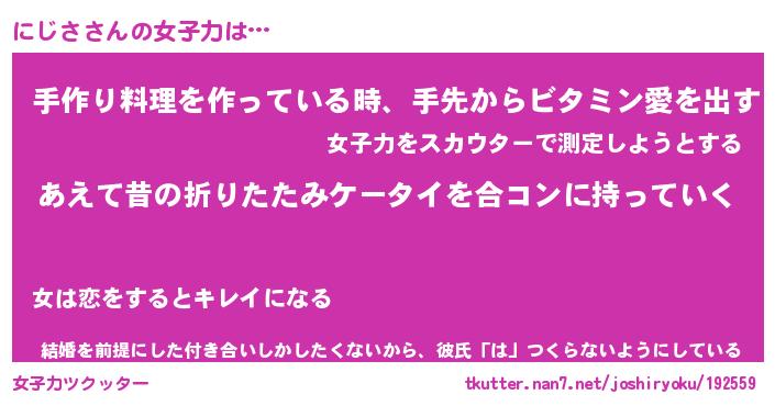 | ヘコむあだ名 | 『にじっふぃ~』『牛乳』『にじ太郎』 |