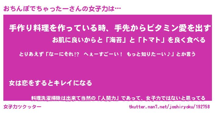 | 料理風あだ名 | 『節約★おちんぽでちゃったーと油揚げの玉子丼』 |