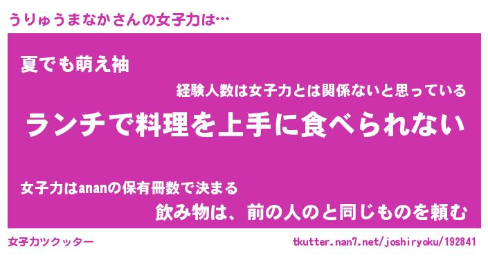 | 料理風あだ名 | 『ネギたっぷりうりゅうまなかの南蛮漬け』 |