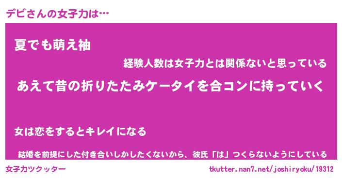 | ヘコむあだ名 | 『デビふぇ~』『なまこ酢』 |