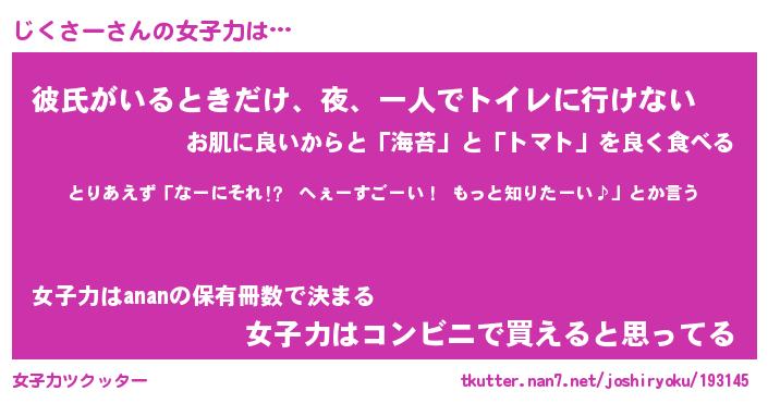 | 意味不明あだ名 | 『ペロリンじくさー』『永久保存じくさー』 |