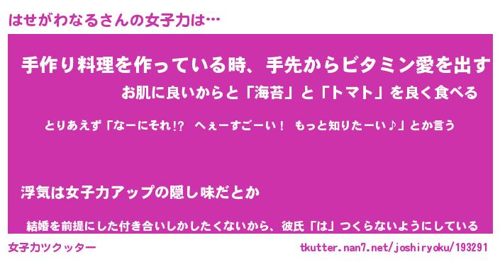 | ヘコむあだ名 | 『はせもー』『つくし』『はせ太郎』 |
