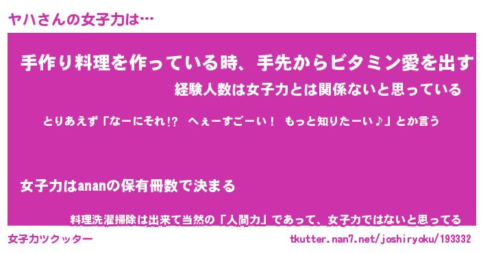| ヘコむあだ名 | 『ヤハふぇ~』『つくし』『ヤハを』 |