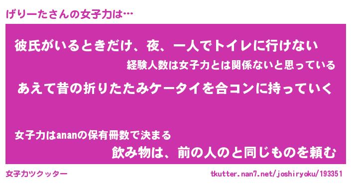 | 意味不明あだ名 | 『ペロリンげりーた』『永久保存げりーた』 |