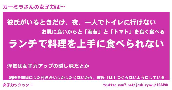 | 恥ずかしいあだ名 | 『プリティーカーミラ』『カーっちょ』 |