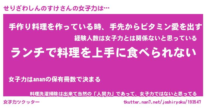 | 胡散臭い通販商品みたいなあだ名 | 『億万長者になれるブレスレット…その名も「せりざわしんのすけ」』 |