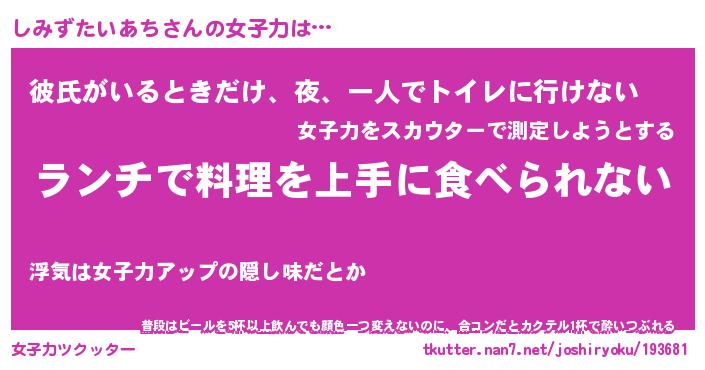 | ヘコむあだ名 | 『しみふぇ~』『豆乳』『しみ太郎』 |