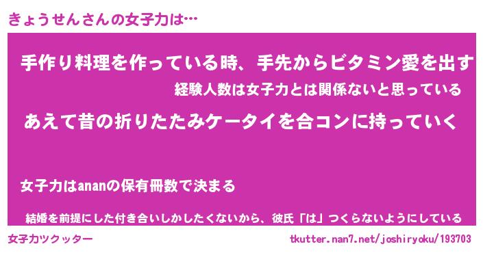 | ヘコむあだ名 | 『きょっふぃ~』『なまこ酢』 |
