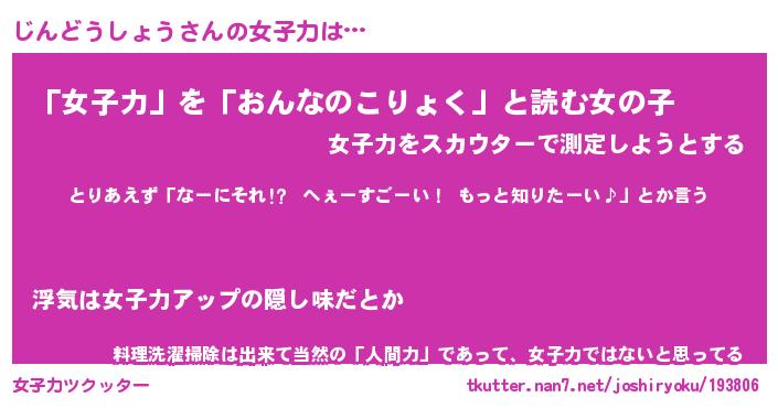 | ヘコむあだ名 | 『じんにー』『豆乳』『じんっ子』 |