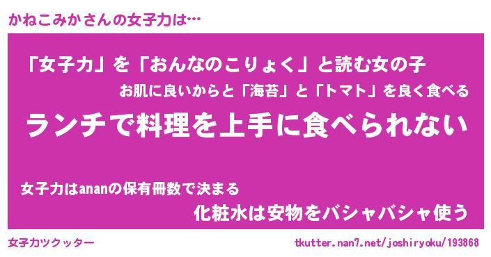 | ヘコむあだ名 | 『かねもー』『豆乳』『かねぷりん』 |
