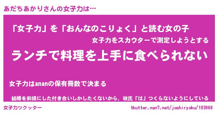 | ヘコむあだ名 | 『あだにー』『牛乳』『あだぷりん』 |