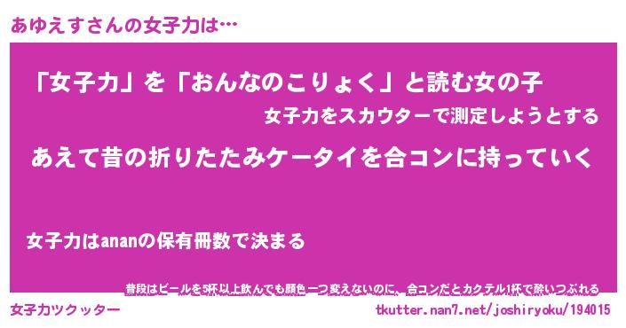 | 意味不明あだ名 | 『ペロリンあゆえす』『永久保存あゆえす』 |
