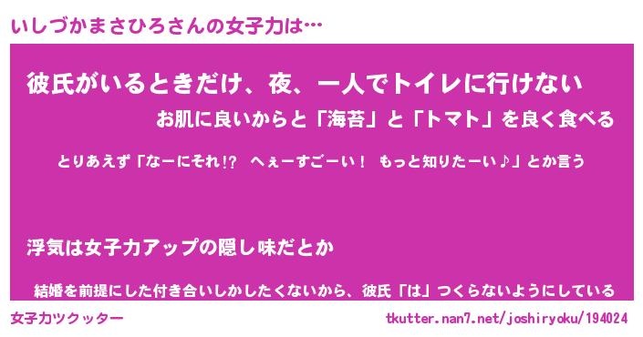 | ヘコむあだ名 | 『いしにゅー』『豆乳』『いしを』 |
