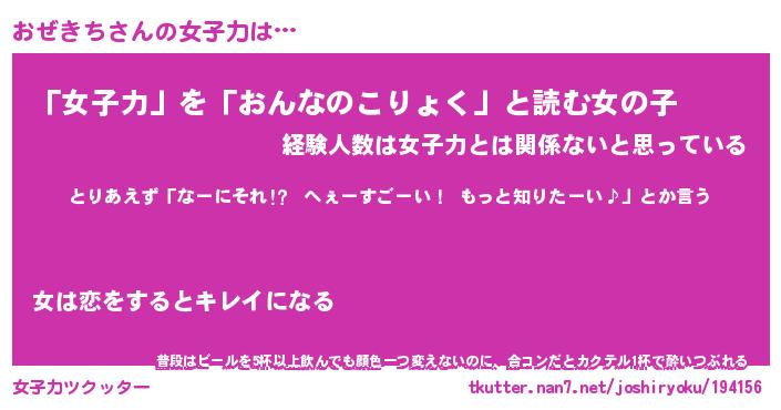| ヘコむあだ名 | 『おぜにー』『なまこ酢』『おぜっ子』 |