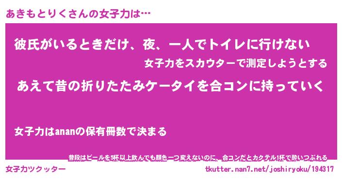 | ヘコむあだ名 | 『あきもー』『豆乳』『あきお』 |