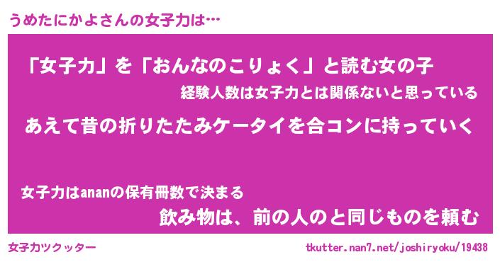 | 男性向けラノベタイトル風あだ名 | 『うめたにかよの憂鬱』 |