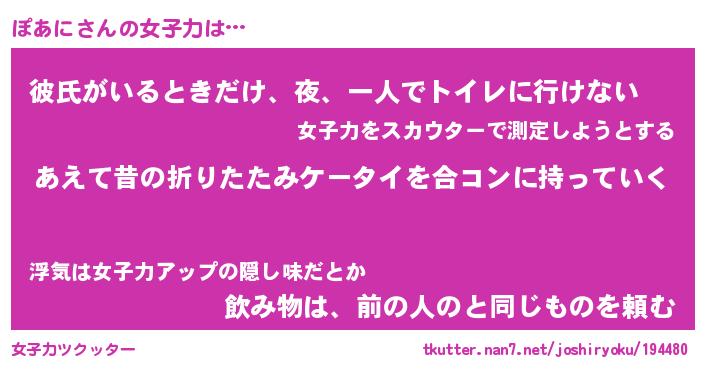 | ヘコむあだ名 | 『ぽあにゅー』『豆乳』『ぽあっ子』 |