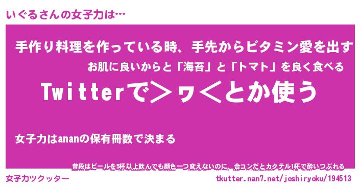 | ヘコむあだ名 | 『いぐにゅー』『つくし』『いぐっ子』 |