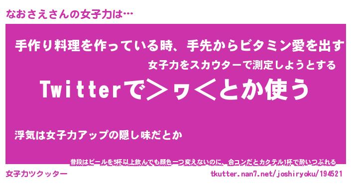 | ヘコむあだ名 | 『なおっふぃ~』『なまこ酢』 |