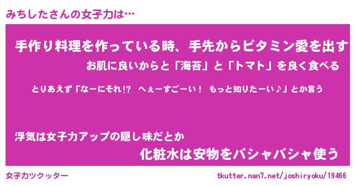 | ヘコむあだ名 | 『みちっふぃ~』『つくし』 |