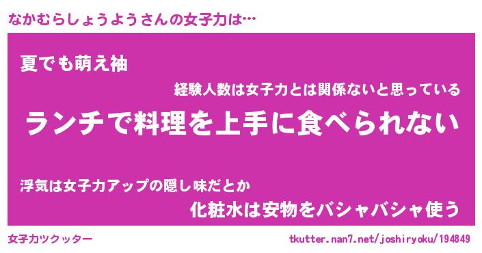 | 肩書あだ名 | 『なかむらしょうよう御曹司』 |