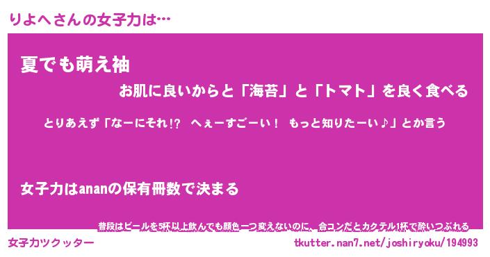 | ファンタジー風あだ名 | 『リヨフェル』『エターナルリヨヘー』 |