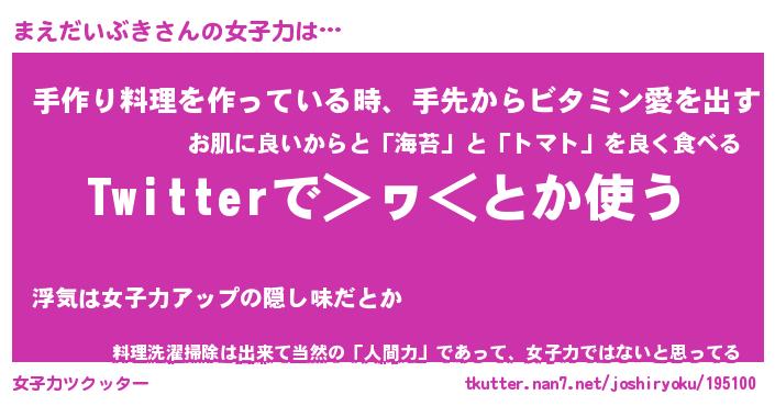 | ヘコむあだ名 | 『まえにゅー』『つくし』『まえっ子』 |
