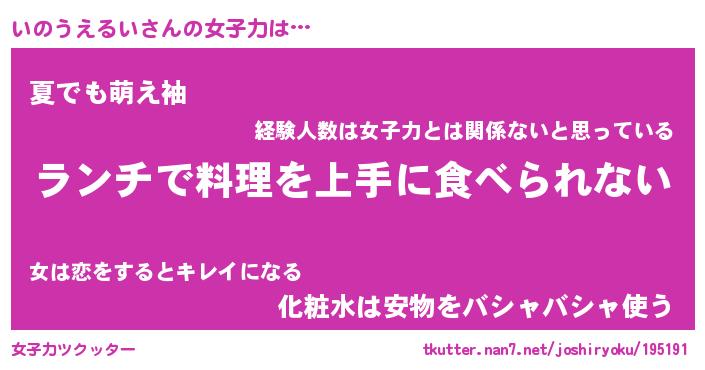 | ヘコむあだ名 | 『いのにー』『つくし』『いのを』 |