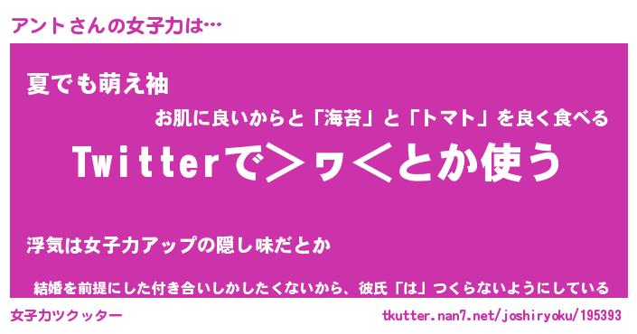 | ヘコむあだ名 | 『アンにゅー』『なまこ酢』 |