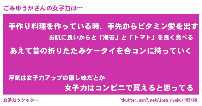 | ファンタジー風あだ名 | 『ゴミフェル』『エターナルゴミユウカー』 |