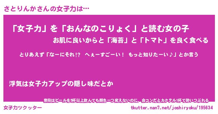 | ツイッター | さとりんかさんのツイッターID『namakemono_kun』 |