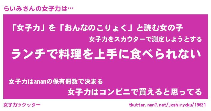 | ヘコむあだ名 | 『らいにゅー』『酢こんぶ』『らいお』 |
