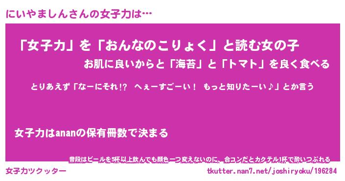| ヘコむあだ名 | 『にいもー』『レバニラ』『にいっ子』 |