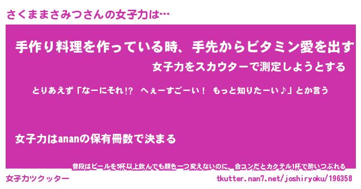 | 恥ずかしいあだ名 | 『プリティーさくままさみつ』『さくちん』 |