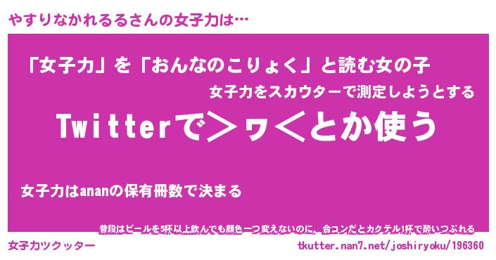 | 男性向けラノベタイトル風あだ名 | 『やすりなかれるるの憂鬱』 |