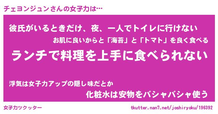 | 料理風あだ名 | 『ネギたっぷりチェヨンジュンの南蛮漬け』 |