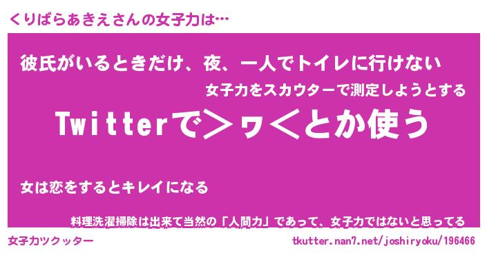 | 恥ずかしいあだ名 | 『プリティーくりばらあきえ』『くりちん』 |