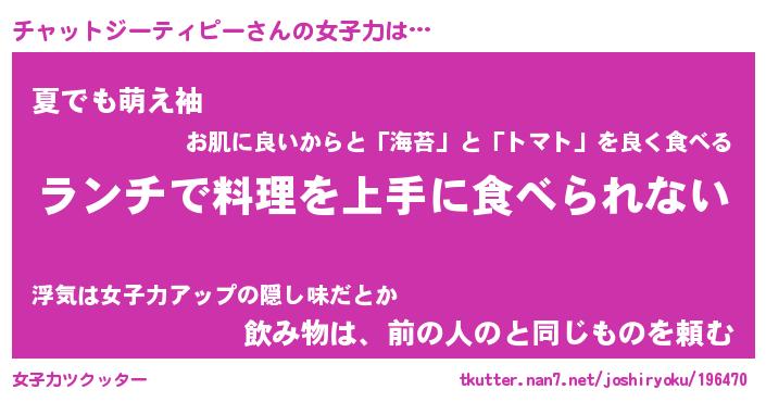 | 料理風あだ名 | 『ネギたっぷりチャットジーティピーの南蛮漬け』 |