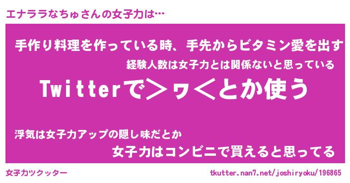 | 男性向けラノベタイトル風あだ名 | 『エナララなちゅの憂鬱』 |