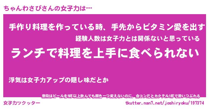 | 恥ずかしいあだ名 | 『プリティーちゃんわさび』『ちゃっちょ』 |