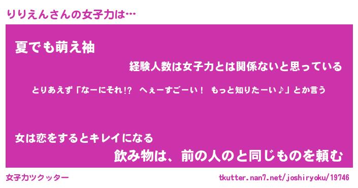 | ヘコむあだ名 | 『りりにー』『なまこ酢』 |