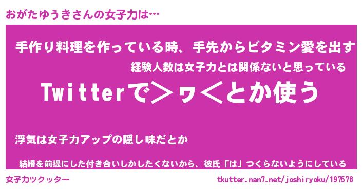 | ヘコむあだ名 | 『おがにー』『つくし』『おがぷりん』 |
