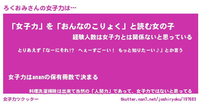 | ヘコむあだ名 | 『ろくにゅー』『酢こんぶ』 |
