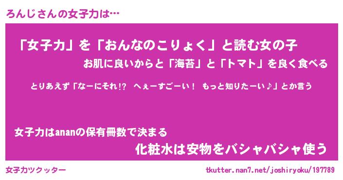 | ヘコむあだ名 | 『ろんふぇ~』『つくし』『ろんお』 |
