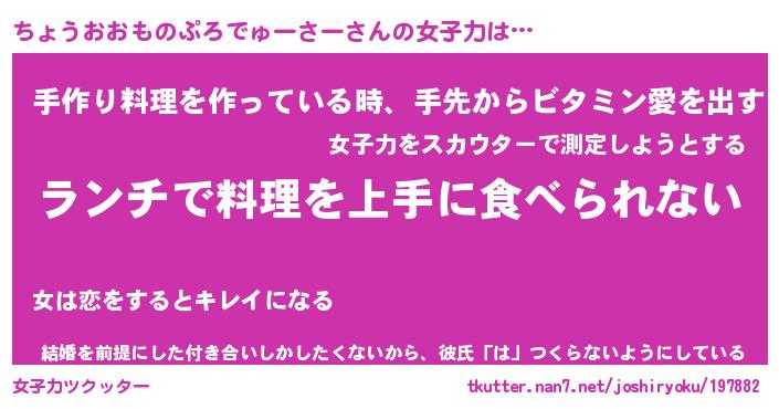 | 料理風あだ名 | 『ネギたっぷりちょうおおものぷろでゅーさーの南蛮漬け』 |