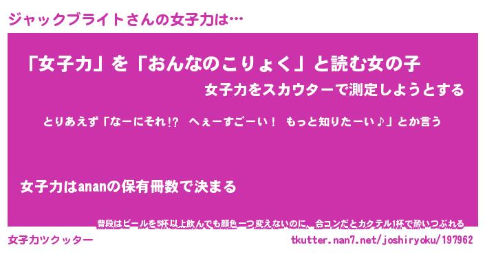 | 女子向けラノベタイトル風あだ名 | 『ジャックブライト姫と円卓の騎士』 |