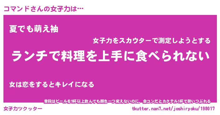 | 男性向けラノベタイトル風あだ名 | 『コマンドアートオンライン』 |
