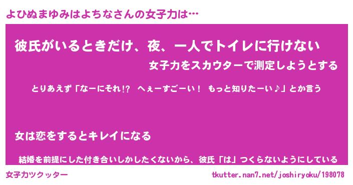 | ヘコむあだ名 | 『よひもー』『豆乳』『よひぷりん』 |