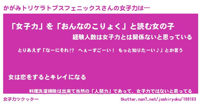 | 女子向けラノベタイトル風あだ名 | 『かがみトリケラトプスフェニックス姫と円卓の騎士』 |